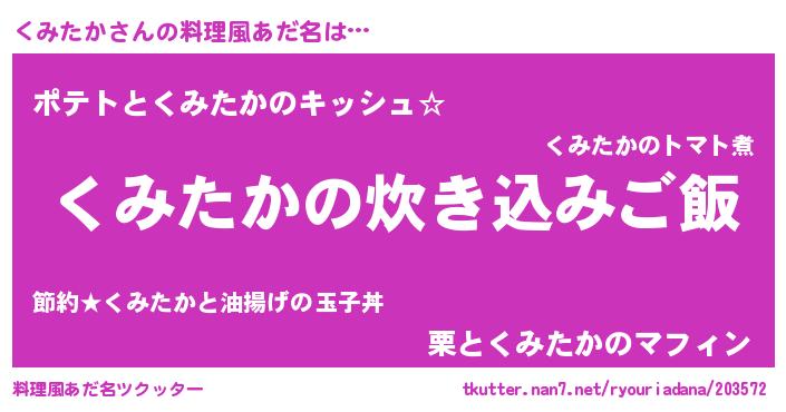 | 欧米人風あだ名 | 『くみたか・ステッグマイヤー』 |