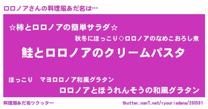 | ヘコむあだ名 | 『ロロノア(震え声)』『ロロっふぃ~』 |
