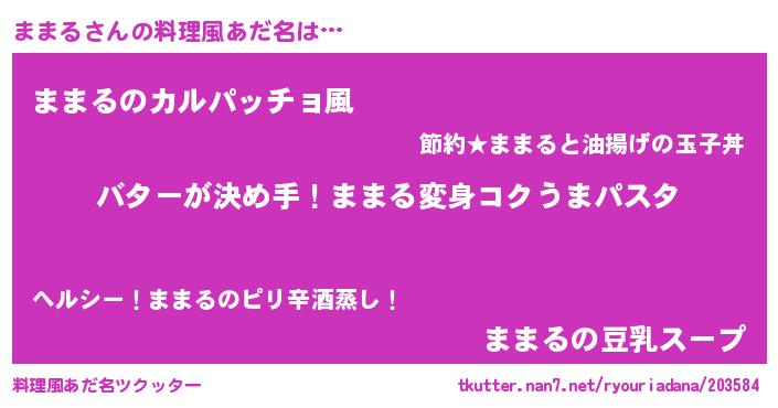 | 意味不明あだ名 | 『眠気覚ましガムままる味』『自称ままる』 |