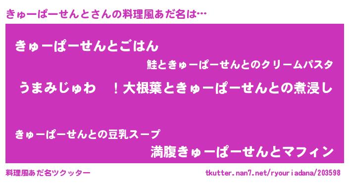 | 意味不明あだ名 | 『きゅーぱーせんとフォーエバー』 |