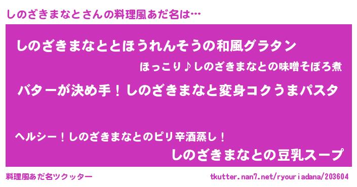 | 女子向けラノベタイトル風あだ名 | 『しのざきまなと恋絵巻』 |