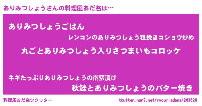 | 意味不明あだ名 | 『住所不定無職ありみつしょう(11歳)』 |