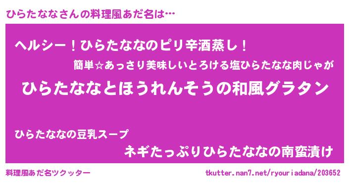 | ヘコむあだ名 | 『ひらもー』『ひらたなな(笑)』 |