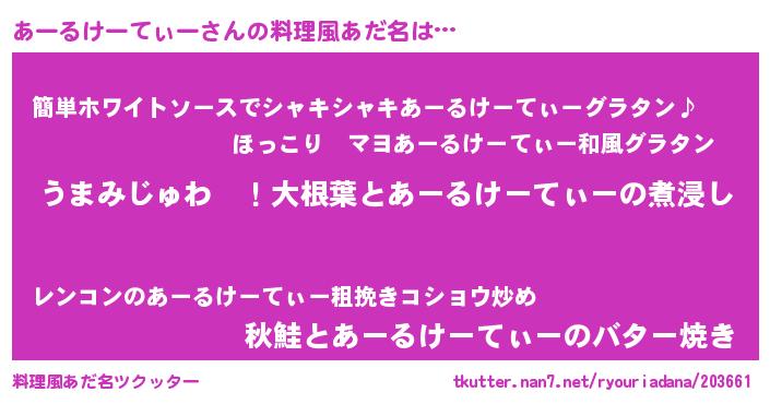 | ファンタジー風あだ名 | 『エターナルアールケーティーー』 |