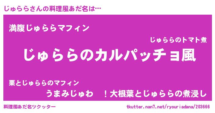 | 意味不明あだ名 | 『住所不定無職じゅらら(43歳)』 |