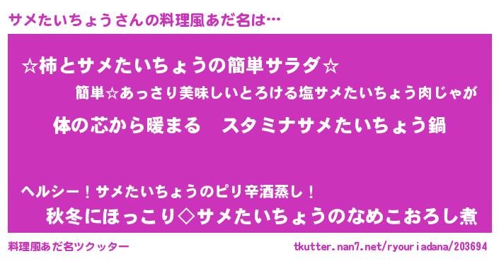 | ファンタジー風あだ名 | 『エターナルサメタイチョウー』 |
