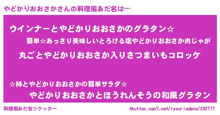 | 男性向けラノベタイトル風あだ名 | 『この素晴らしい世界にやどかりおおさかを!』 |