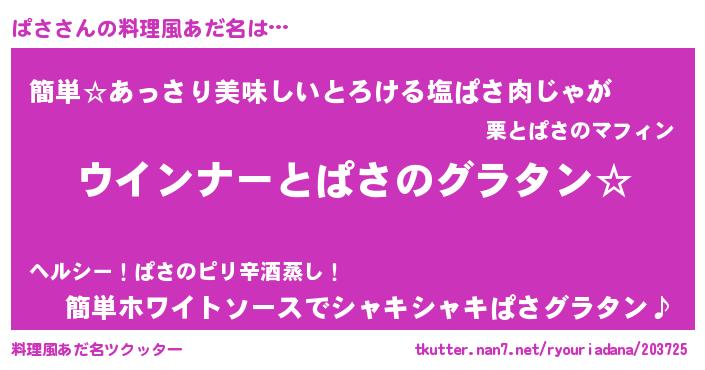 | 意味不明あだ名 | 『ぱさフォーエバー』『永久保存ぱさ』 |