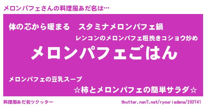 | ヒーロー風カッコイイあだ名 | 『ウルトラメロンパフェマン』 |