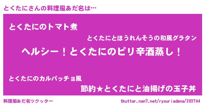 | 意味不明あだ名 | 『自称とくたに』『ペロリンとくたに』 |