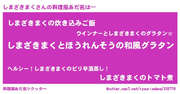 | 女子向けラノベタイトル風あだ名 | 『しまざきまくの玉の輿計画!』 |