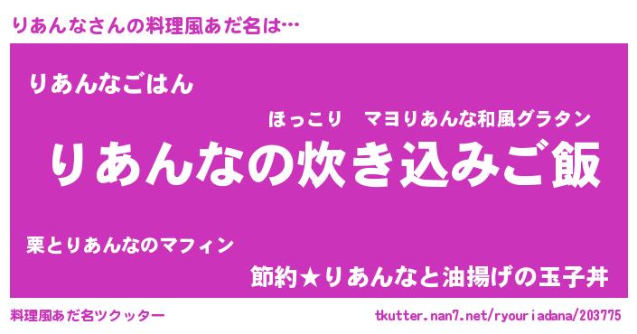 | 胡散臭い通販商品みたいなあだ名 | 『億万長者になれる霊験あらたかなお札…その名も「りあんな」』 |