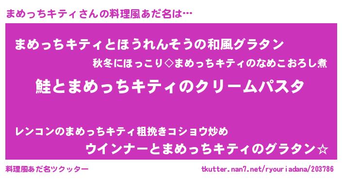 | 女子向けラノベタイトル風あだ名 | 『死神まめっちキティの再婚』 |