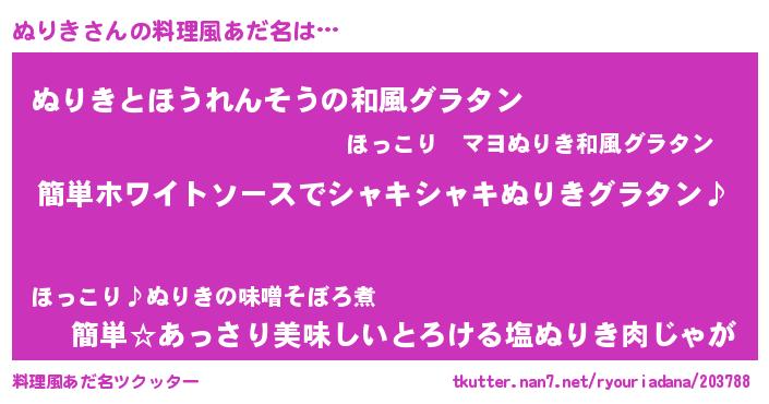 | ピコ太郎風あだ名 | 『ヌリ八郎』『ピコヌ郎』『ヌコ一郎』 |