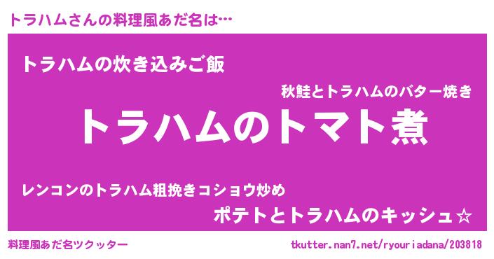 | 男性向けラノベタイトル風あだ名 | 『おまえをオタクにしてやるから、俺をトラハムにしてくれ! 』 |