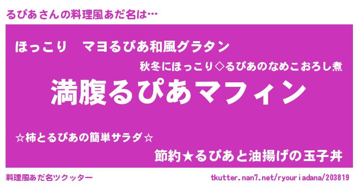 | ヘコむあだ名 | 『るぴあ(笑)』『るぴにゅー』 |