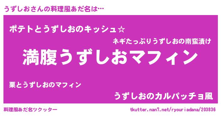| 男性向けラノベタイトル風あだ名 | 『うずしおという概念が存在しない退屈な世界 』 |