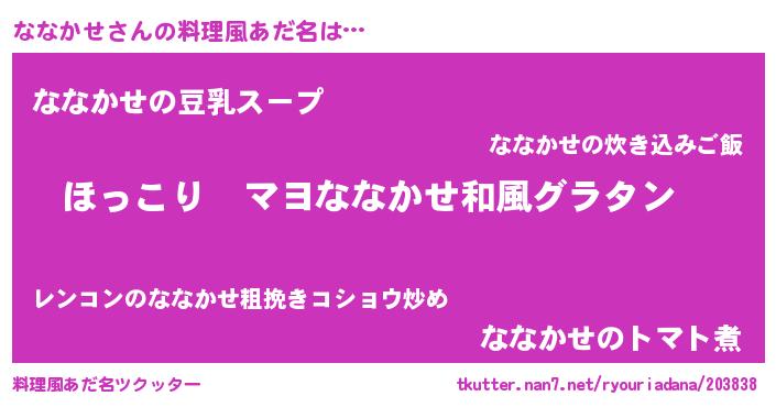 | 男性向けラノベタイトル風あだ名 | 『この素晴らしい世界にななかせを!』 |