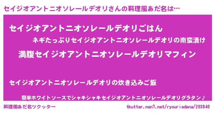 | 意味不明あだ名 | 『永久保存セイジオアントニオソレールデオリ』 |