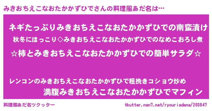 | 恥ずかしいあだ名 | 『プリティーみきおちえこなおたかかずひで』 |