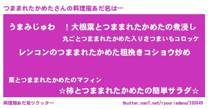 | 意味不明あだ名 | 『自称つままれたかめた』 |