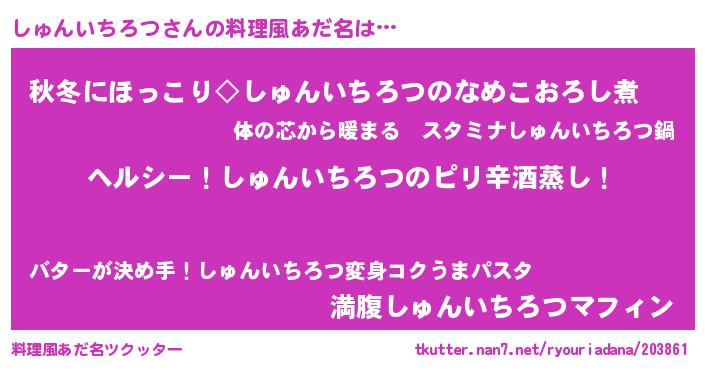 | 意味不明あだ名 | 『自称しゅんいちろつ』 |