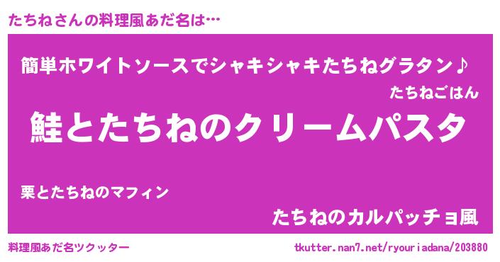 | 女子向けラノベタイトル風あだ名 | 『死神たちねの再婚』『たちね様がみてる』 |