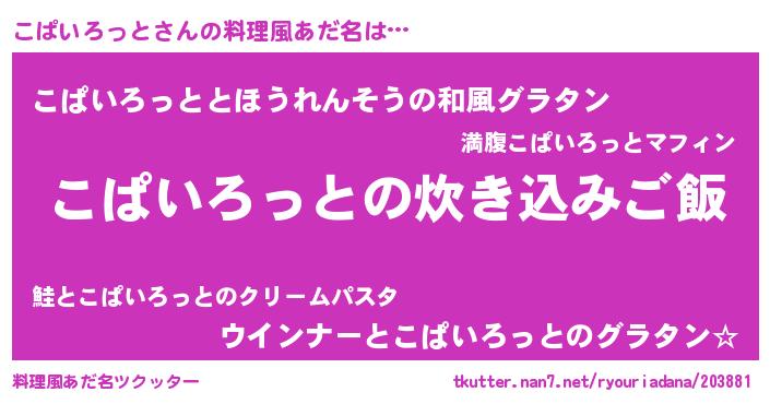 | 意味不明あだ名 | 『ニラ科こぱいろっと属』 |