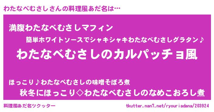 | 女子向けラノベタイトル風あだ名 | 『わたなべむさしが死なない童話 林檎のわたなべむさしの診療簿』 |