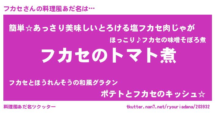 | 可愛いあだ名 | 『フカちゅっちゅ』『フカセママ』 |
