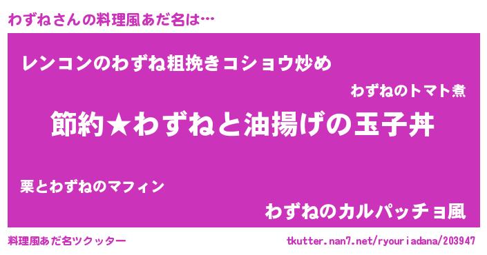 | ヘコむあだ名 | 『わずにゅー』『わずね(小並感)』 |