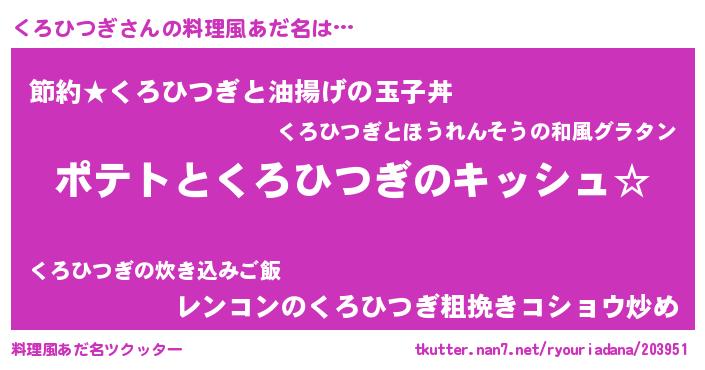 | ポケモン風あだ名 | 『ヒクロヒツギ』『クロチュウ』 |