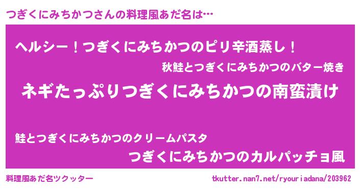 | 胡散臭い通販商品みたいなあだ名 | 『億万長者になれるブレスレット…その名も「つぎくにみちかつ」』 |
