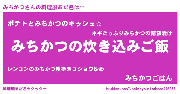 | 胡散臭い通販商品みたいなあだ名 | 『全米が絶賛したサプリメント…その名も「みちかつ」』 |