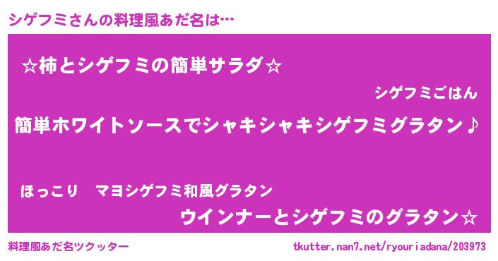 | ピコ太郎風あだ名 | 『シゲ六郎』『ピシ十郎』『ピコシ郎』 |