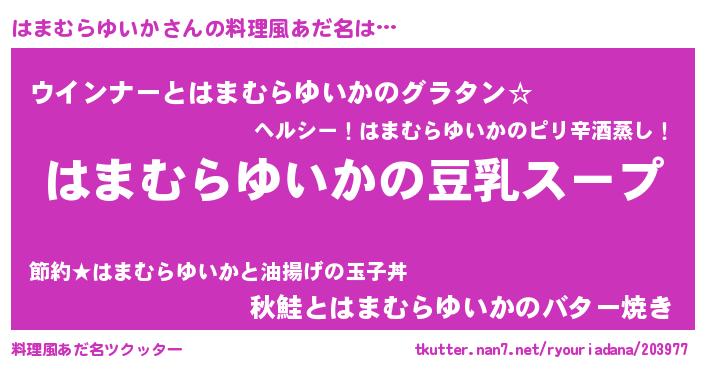 | 意味不明あだ名 | 『とにかく怪しいはまむらゆいか』 |
