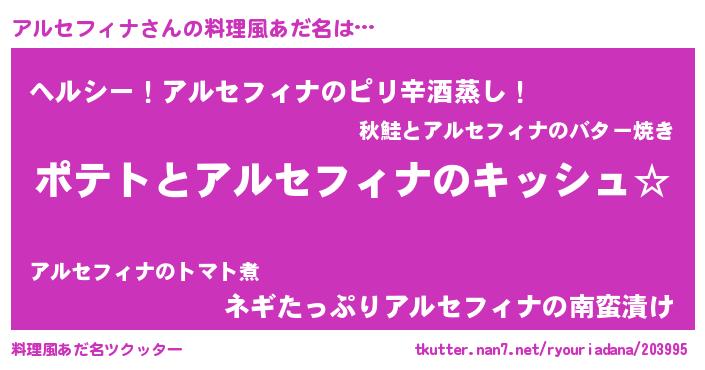 | 意味不明あだ名 | 『とにかく怪しいアルセフィナ』 |