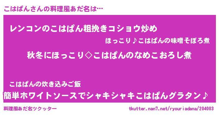 | 欧米人風あだ名 | 『アンジェラ・こはぱん』 |
