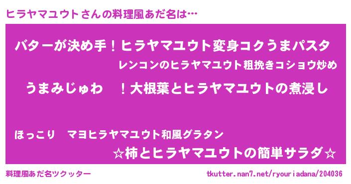 | 欧米人風あだ名 | 『ヒラヤマユウトクリステル』 |