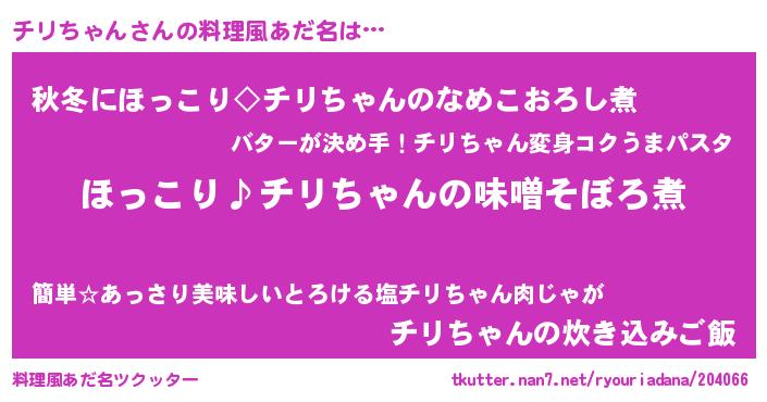 | ヘコむあだ名 | 『チリもー』『チリちゃん(震え声)』 |