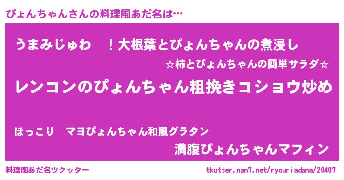 | 胡散臭い通販商品みたいなあだ名 | 『テレビで話題のアガリクス…その名も「ぴょんちゃん」』 |