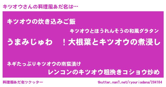 | 胡散臭い通販商品みたいなあだ名 | 『運命の人と巡り会える高級そうな皿…その名も「キツオウ」』 |