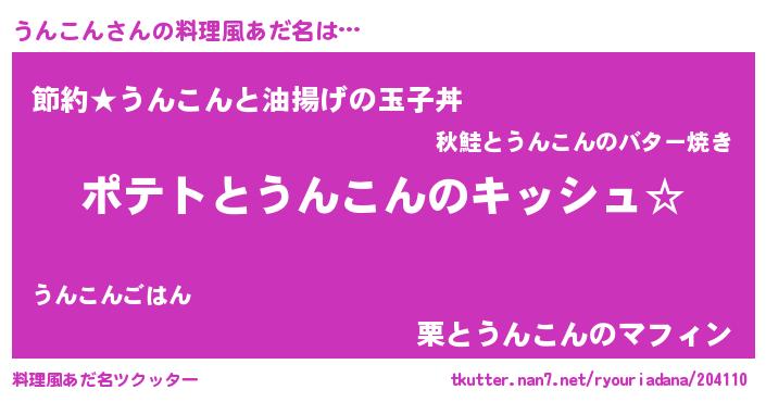 | 女子向けラノベタイトル風あだ名 | 『うんこんの卵を拾いまして』 |