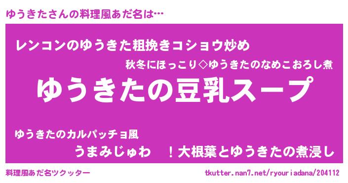 | 女子向けラノベタイトル風あだ名 | 『ゆうきたは平凡を望む』 |