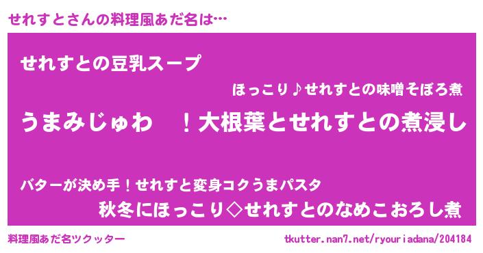 | 女子向けラノベタイトル風あだ名 | 『せれすとの婚約者』『せれすと恋絵巻』 |