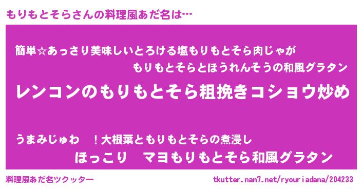 | ヘコむあだ名 | 『もりもとそら(笑)』『レバニラ』 |