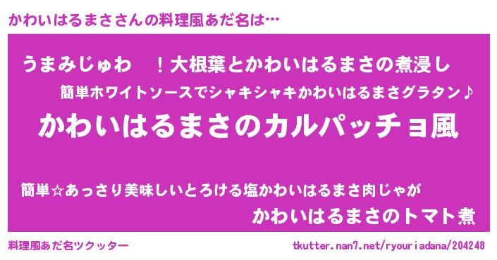 | 意味不明あだ名 | 『住所不定無職かわいはるまさ(86歳)』 |