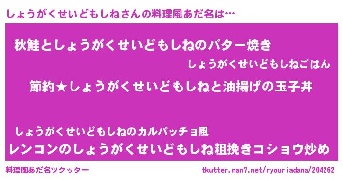 | 男性向けラノベタイトル風あだ名 | 『しょうがくせいどもしねの憂鬱』 |
