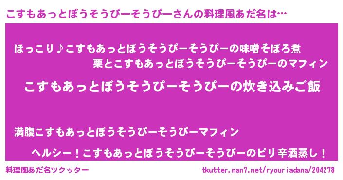 | 恥ずかしいあだ名 | 『プリティーこすもあっとぼうそうぴーそうぴー』 |