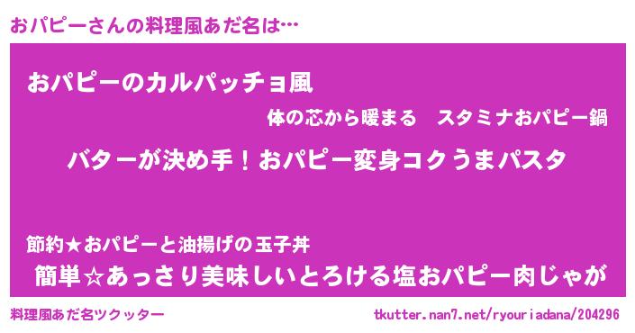 | 男性向けラノベタイトル風あだ名 | 『ノーゲーム・ノーオパピー』 |